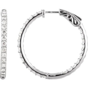 14K White Gold 2 CTW Natural Diamond Inside-Outside Hinged Hoop Earrings