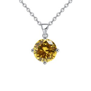 18K White Gold 1/2 Carat Created Champagne Round Stud Necklace Plated 18 inch
